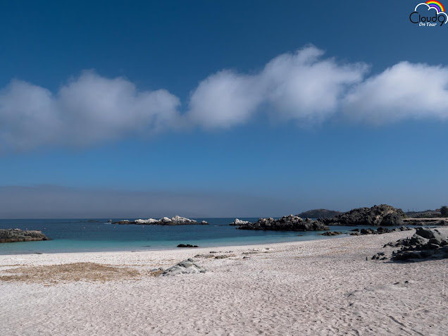 We are now back on the coast relaxing in the sun at Bahia Inglesa which is the nicest beach we have discovered so far .