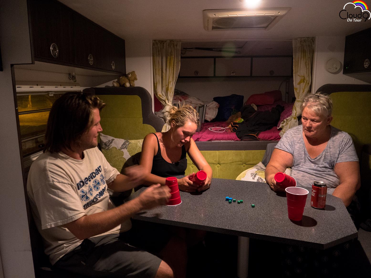 We stopped a couple of nights near the river Loa near the town of Maria Elena and met a young british couple "James and Gemma " who were just finishing their journey in a little van they converted. We had a great games night but do you think Pat might be peeking