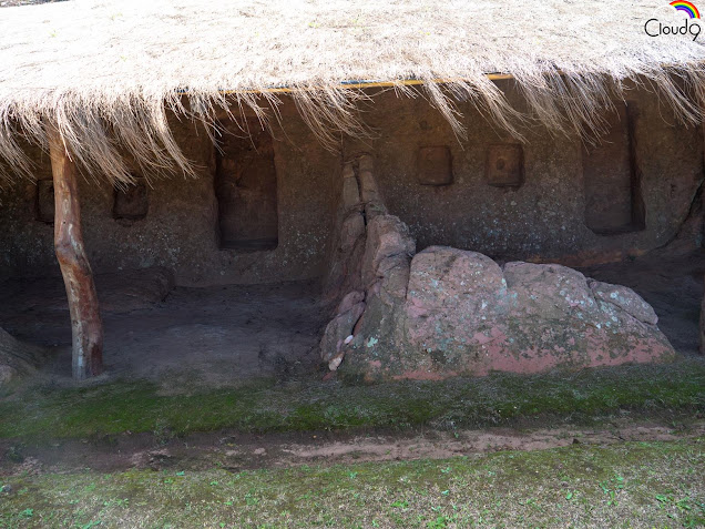 The alcoves in the rocks in the following pictures were the burial sites of important people. Each site was assigned a priest who's roll was to live in front of, and guard, the corpse for ever. Nice work if you can get it.