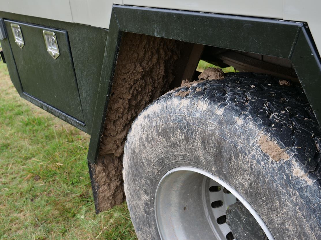 resting firmly on its differentials, tipped over by about 20 degrees.